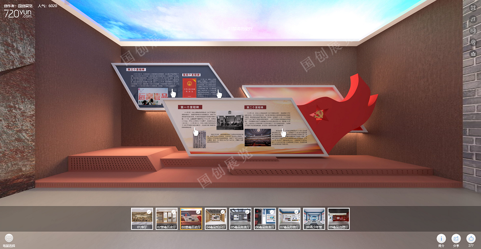 项目介绍 VR展馆是通过云端VR技术,为宣传内容提供虚拟场景搭建等各端服务;在有限的展台空间中,提供空间无限的、全方位、沉浸式内容(展示环境)展示。VR展馆能够打破时间限制以及场地限制,不仅能够使展会同时面对世界各地更多的人,更能打破时间、空间的限制实现永不落幕的展厅。